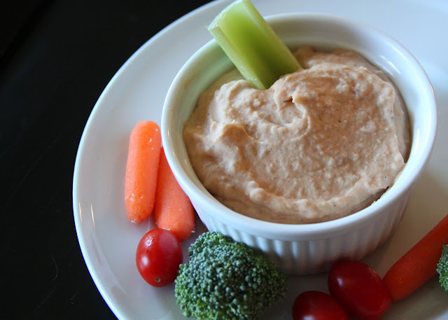 For me, tailgating food means lots and lots of raw veggies served with some type of hummus/bean dip and maybe something sweet on the side. So when I saw Jenna's recipe for White Bean Dip with Pita Chips, I got to making my shopping list.